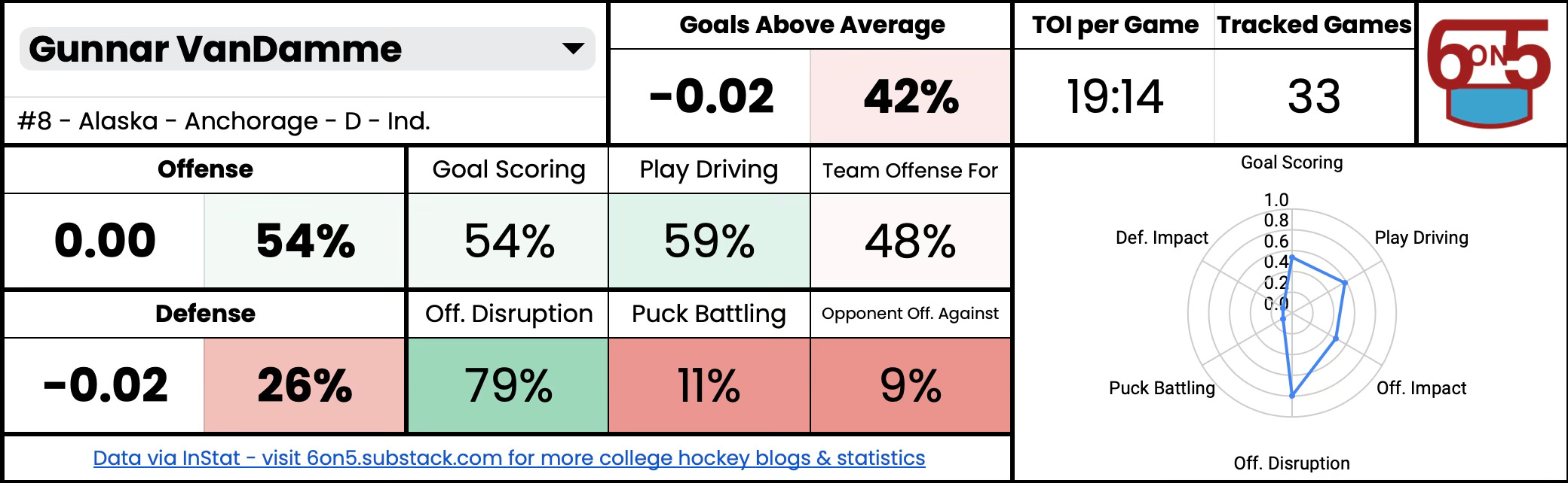 On the other side of the puck, VanDamme isn’t necessarily a shutdown force, but he can handle his own in the defensive zone. He uses his stick well and after recovering the puck, does well to generate breakouts. He draws penalties at a high rate and doesn’t take many himself.