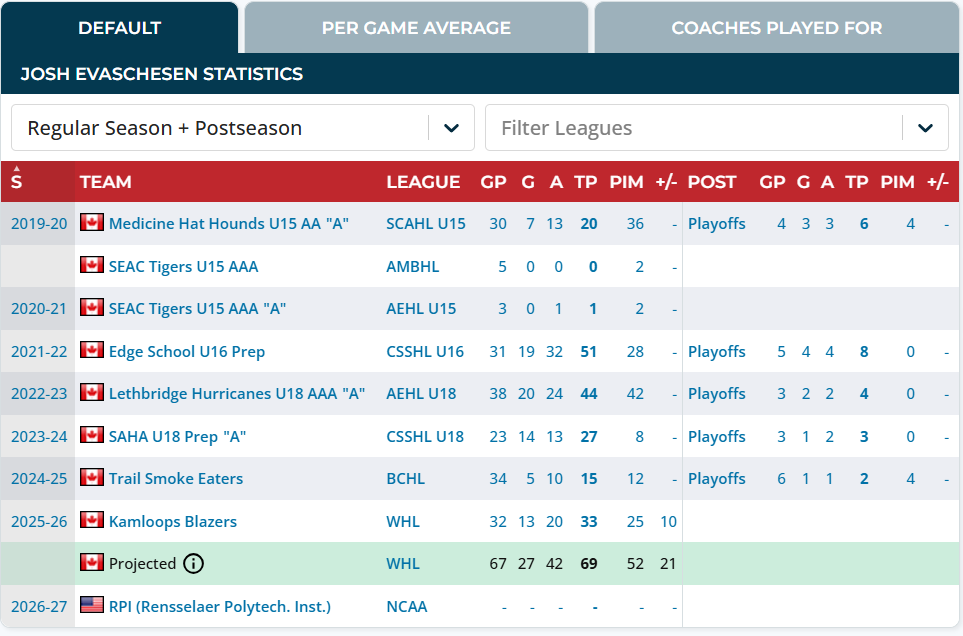 First things first, I would note that Josh is a younger commit but probably still arrives at RPI this fall. For recruits like this, they typically possess higher upside but can have an adjustment period. Josh is getting better rapidly, as you can see his numbers in the WHL are way better than in the BCHL, which is an easier league. This is indicative of his quick ascension and gets me excited that he can hit the ground running at RPI.