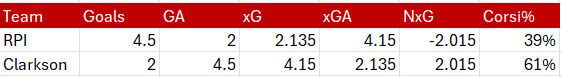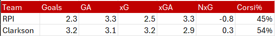 RPI swept the season series despite Clarkson out chancing them in those games. It’s not easy to beat a team for a 3rd time and I reckon Clarkson is motivated to change the narrative around the series.