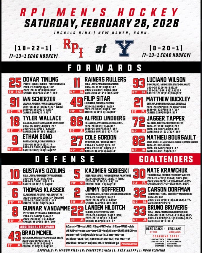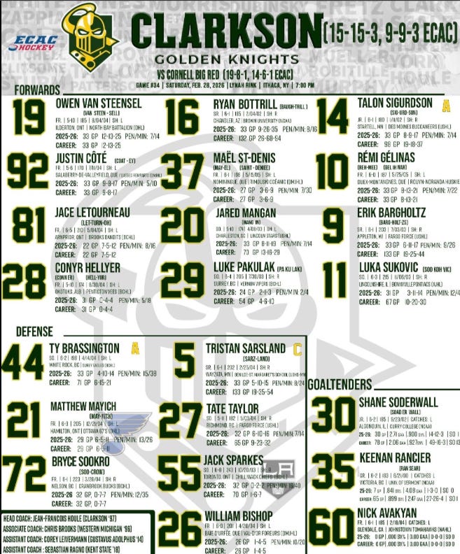 I spoke before about Clarkson being motivated to prevent a sweep, plus they will be on their home ice. RPI will need to be completely locked in and play intelligently to win the effort battle.
