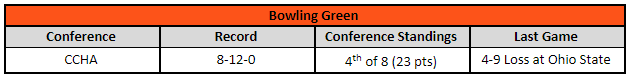 Bowling Green sit in fourth place (but only two points off first - it’s all very tight in the top four) in the CCHA - a league that is generally a step below the ECAC in terms of average team quality, but one that still always has some really strong teams.