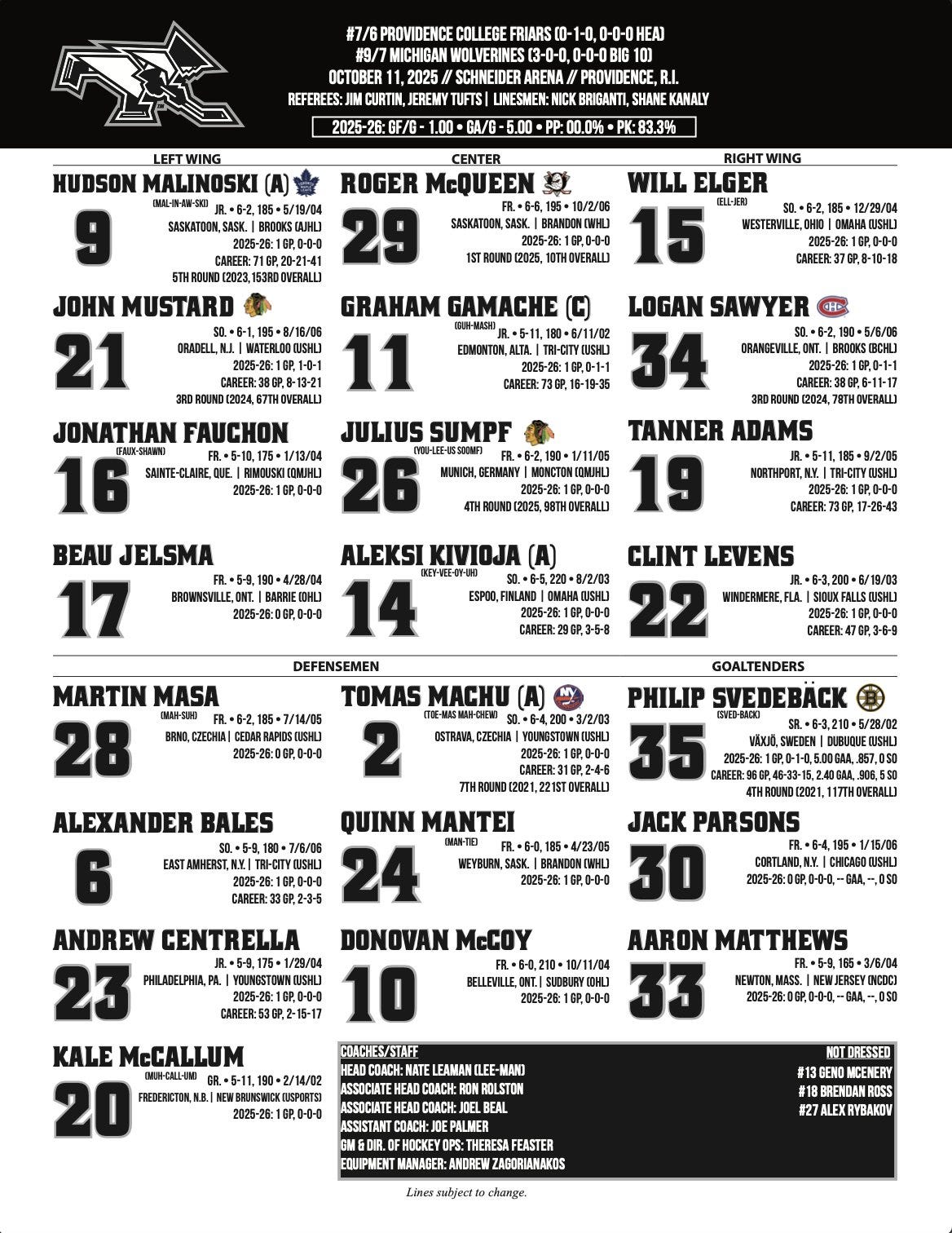 John Mustard is probably the 2nd most prolific piece on the roster behind McQueen, and he lit the lamp twice last weekend. He is a 3rd-round pick of Chicago and looking to build on his strong freshman campaign (20 points). Providence is very talented up front with a wealth of NHL draft picks like Hudson Malinoski, Logan Sawyer, and Julius Sumpf leading the attack. RPI will need to shore up its defensive troubles from last weekend to hang with this group. Philip Svedeback is the lone senior on the roster and has been the starter all 4 years of his career at PC. He got the victory against RPI 2 years ago and is one of the better goaltenders in Hockey East. I expect him to be in net given it is PC’s only action this weekend.